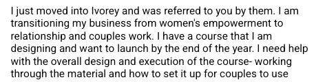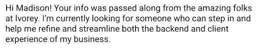 Instead, she stayed in her zone of genuis, selling and serving her audience, while I handled the complete system migration to Ivorey behind the scenes.