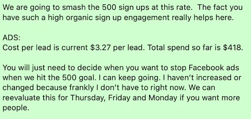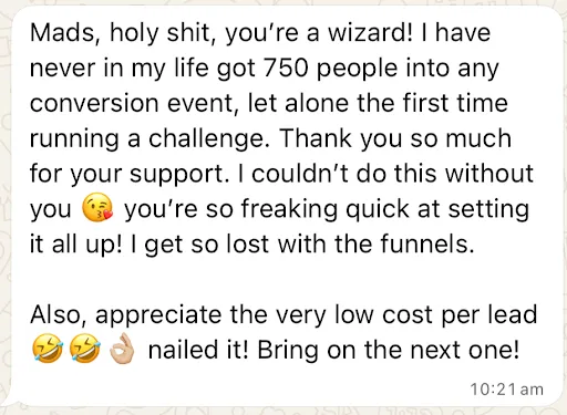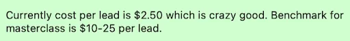 Her cost per lead had climbed to $9-13 for basic lead magnets and $30+ for webinar signups.